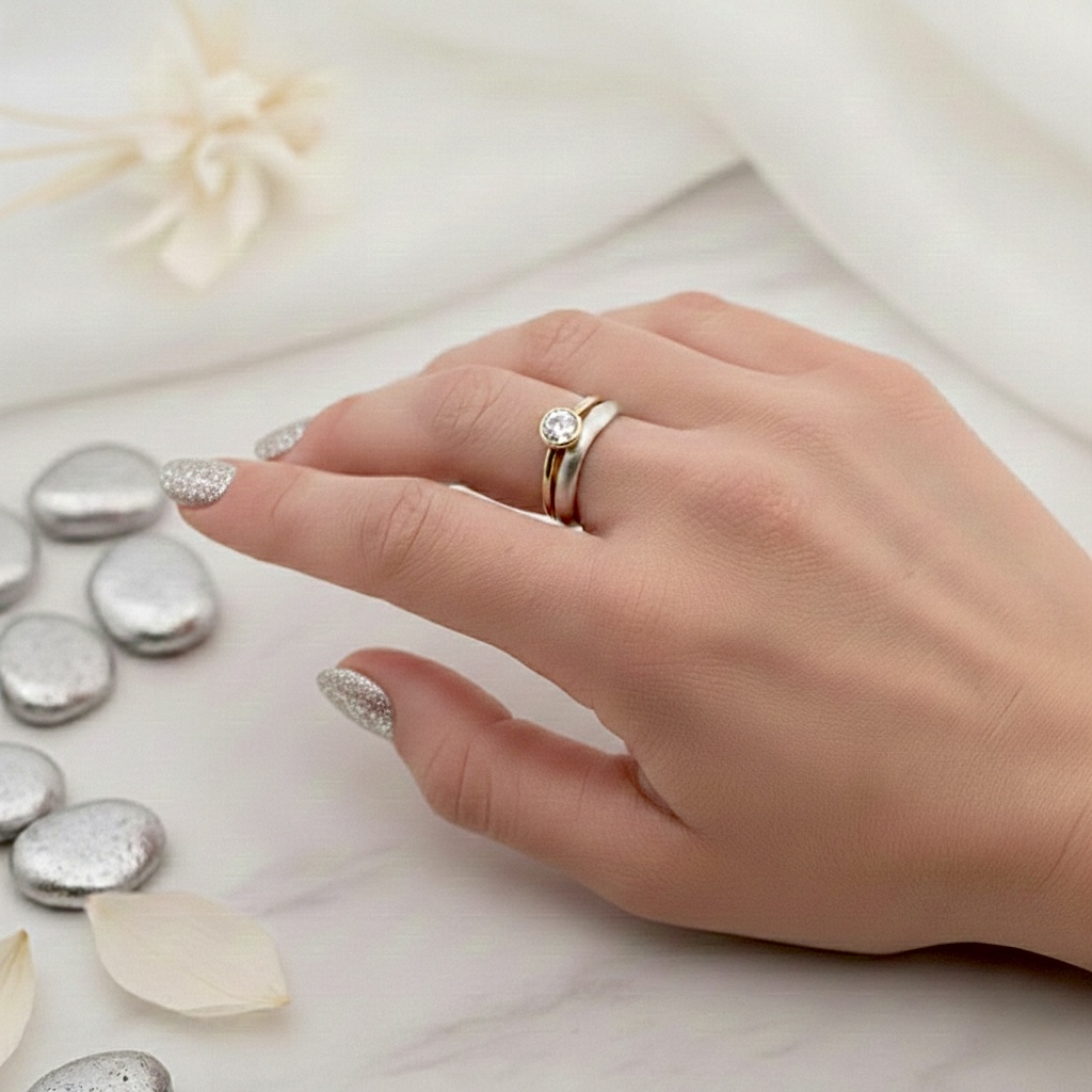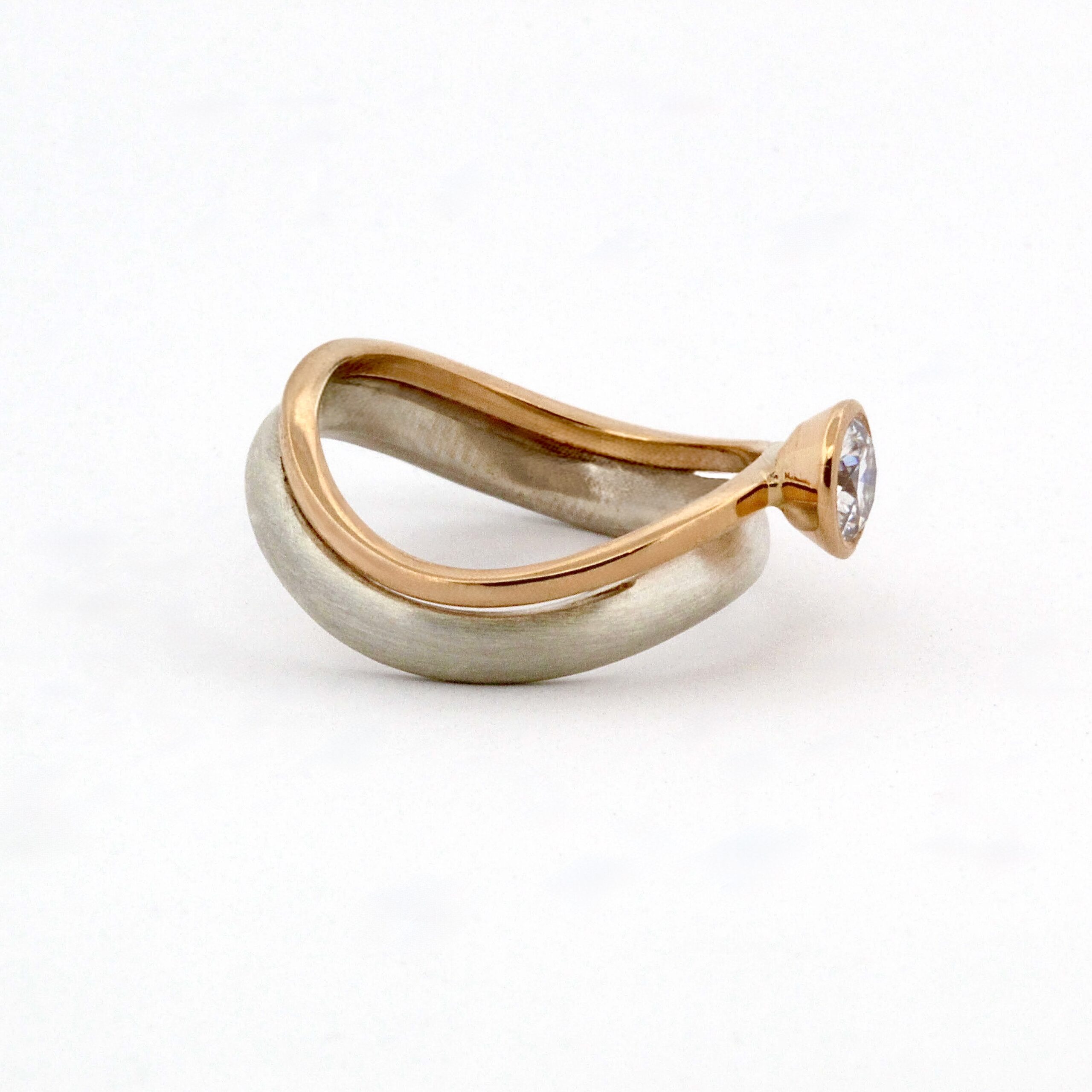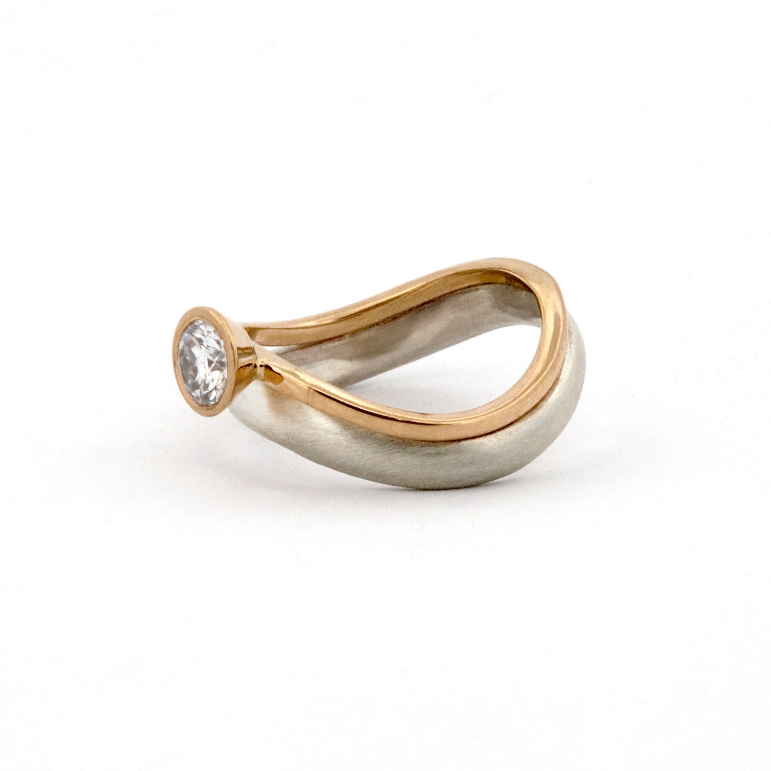 Solvåg – Ring i sidenmatt silver med rödguld & moissanit